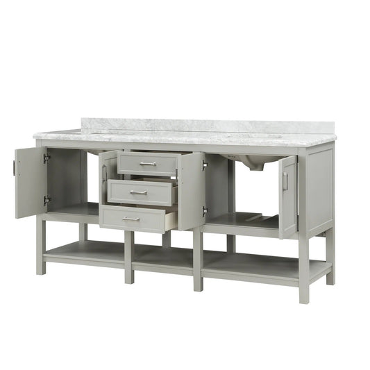 72" Double Sink Bathroom Vanity with Marble Top - Gray