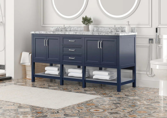 72" Double Sink Bathroom Vanity with Marble Top - Blue