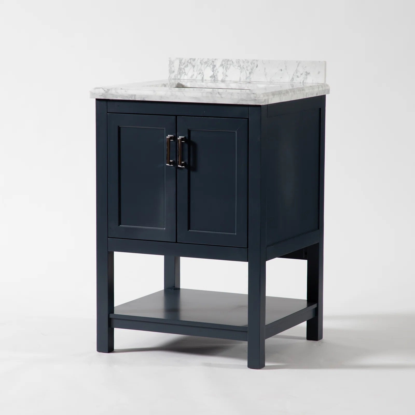 25" Single Sink Bathroom Vanity with Marble Top - Blue